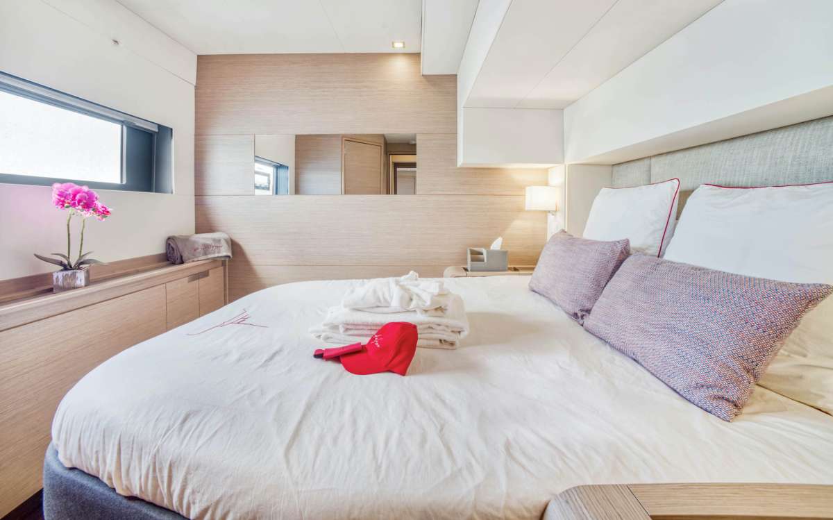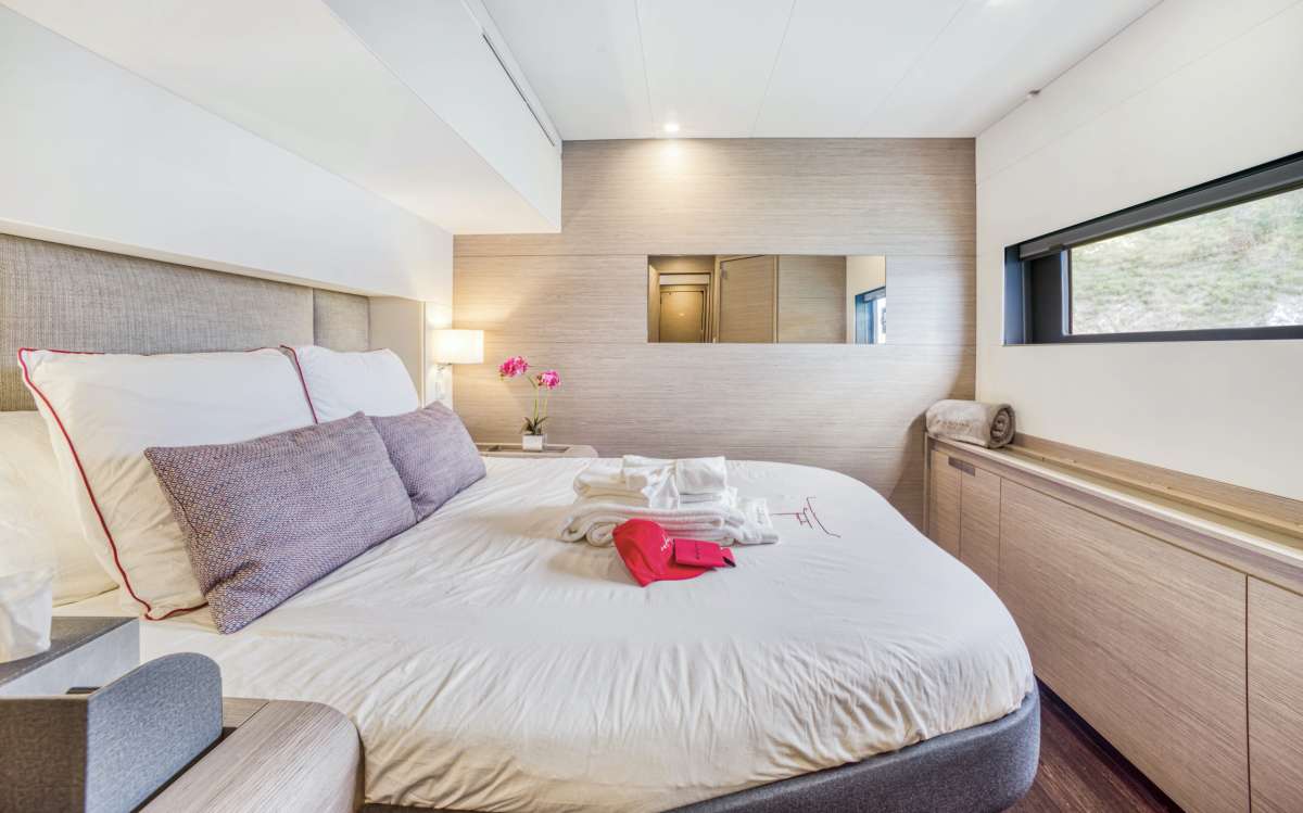 | "Indulgence" evokes pure pleasure—a surrender to comfort, beauty, and unforgettable moments. This stunning 2023 67’ Fountaine Pajot Alegria is designed for the ultimate luxury charter, accommodating up to 10 guests in four queen cabins and one bunk cabin, each with a private en-suite bathroom. Unwind in the forward jacuzzi, enjoy panoramic views from the 37-square-meter flybridge, or relax in the elegant 39-square-meter saloon, perfect for both dining and lounging. With a performance rig for smooth sailing, Indulgence offers the perfect blend of adventure and tranquility. Her sleek design and open layout create an atmosphere of effortless luxury, while the dedicated crew ensures every detail—from gourmet dining to personalized service—is tailored to you. Let Indulgence redefine your escape—where every sail is a memory in the making. |