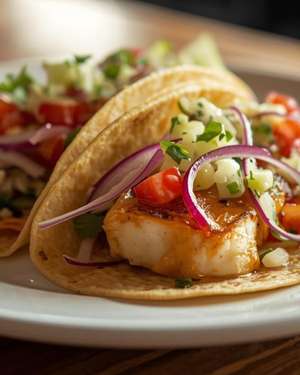 Lunch: Golden spiced fresh fish goujons served with smoky chipotle mayo, a fresh tropical salsa, and smooth avocado crema. Accompanied by a crisp citrus slaw of shredded cabbage, carrot, and coriander, lightly dressed with lime and olive oil.