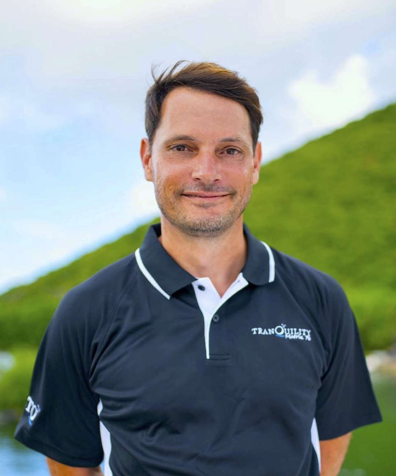 A Swiss sense of humor, (good luck) coupled with a professional, open and relaxed manner. He will make you feel safe and at home the moment you step aboard Tranquility.